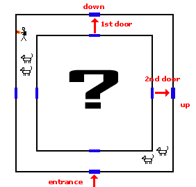 On the left side is a door with a wheel. Turn it to open the door. Behind the door is a path leading down. (If there are stairs leading up behind, it's the wrong door. Go back to the left and around the corner.) Draw weapons and run down. Shoot the brawler. Jump into the water. Dive into the hole on the left. Kill the diver with the harpoon. (Or climb out of the water and use any weapon.) After the struggle get some fresh air. Back into the tunnel. Flip the lever at the end. Turn around 180 degrees and dive through the gate on the right. After that right again and again. Use the lever on the left. Continue your way. (right, right, left, left) At the end swim to the surface and leave the pool. Run up the stairs and to the left.2nd Door With Wheel